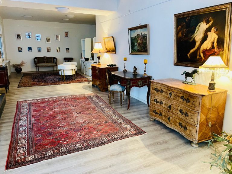 • Möbel: Tische, Schränke, Stühle, Betten, Sofas, Vitrinen und Schreibmöbel aus verschiedenen Stilepochen wie Barock, Biedermeier oder Jugendstil.